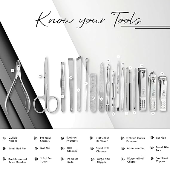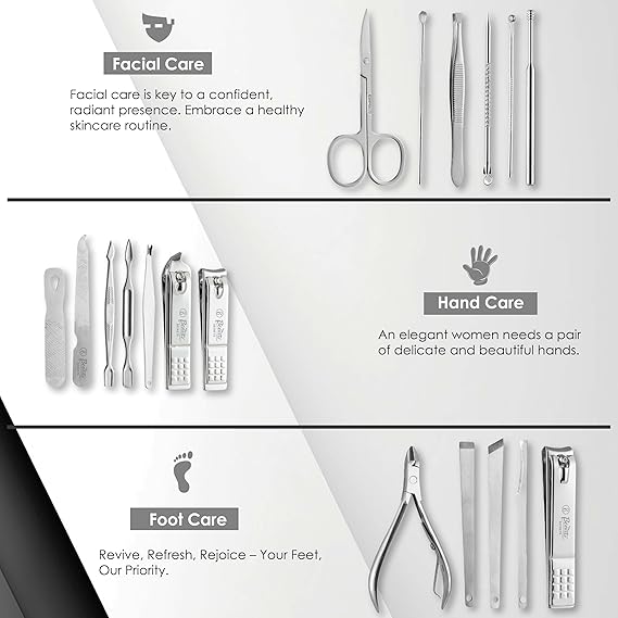 Black Manicure Kit 18 in 1 – your ultimate grooming companion! This versatile grooming kit is not just a beard kit for men, but a unique gift for women, perfect for anyone who values elegance and precision in their grooming routine. Encased in a sleek black leather travel case, this manicure pedicure kit for women and men is designed to cater to all your nail care needs wherever you go. Whether you’re seeking a nail cutter set for men or a pedicure set for women, this kit has you covered. It includes a complete manicure set with high-quality nail tools like cuticle cutters and nail clippers to keep your nails looking pristine. With a manicure pedicure tool kit like this, a thoughtful gift for her. It’s perfect as a girl gift for ages 18 to 20 or even as birthday gifts for girls aged 18 to 25. This grooming kit for women also shines as a beauty kit for women gift. Whether you’re pampering yourself or looking for useful gifts for women, the Wishkey Black Manicure Kit makes it easy. It’s an ideal gift under 500 that combines practicality with style, making it one of the best gifts for women who love to care for their nails. Drfoot fans will appreciate the meticulous attention to detail in this pedicure kit, which includes everything from a nail cleaner to a nile cutter (yes, we mean nail cutter!). It’s a men grooming set that doubles as a grooming kit for women, offering a comprehensive range of pedicure tools and nail care essentials. Looking for a pedicure kit for men or a manicure set to keep your nails looking sharp on the go? This compact nail set for women fits easily in your luggage or handbag, ensuring you’re always prepared. It’s not just a manicure kit