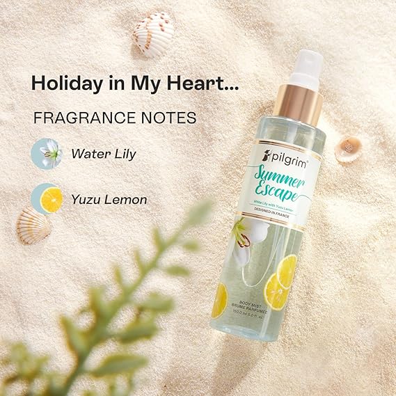 Pilgrim Summer Escape Body Mist (White Lily with yuzu lemon) Perfume for women| 150 ml